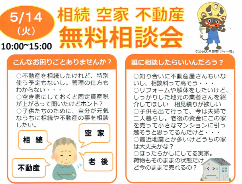 5月14日 大牟田ゆめタウンにて相続・空家 不動産無料相談会
