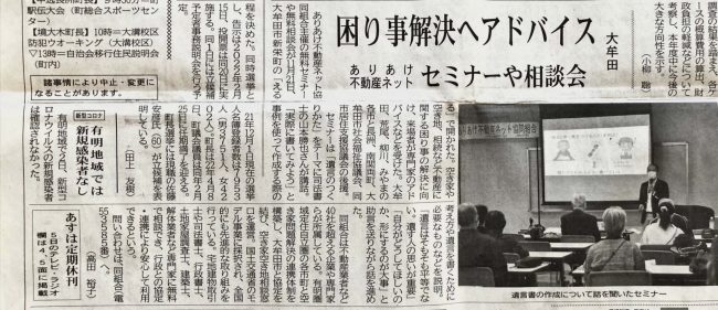 11月21日に多数のご来場をいただきました「えるる 空き家・空き地無料相談会」が有明新報に掲載されました。