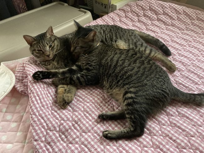 ぼく、ハルです。 コラムBy RYハウジング2019年4月16日ぼく、平成31年2月5日生まれのハルです。 先輩に見習って勉強中です。同じ姿がんばってます!! やっとテン先輩が一緒に寝てくれました。 💛うれしい~~~